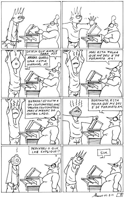 Ele queira uma folha A3 para terminar um trabalho. Mas a senhora do centro de cópias não vendia folhas de formato A3. Ele insistiu. Ela repetiu que não vendia folhas de formato A3. E ele não desistiu...